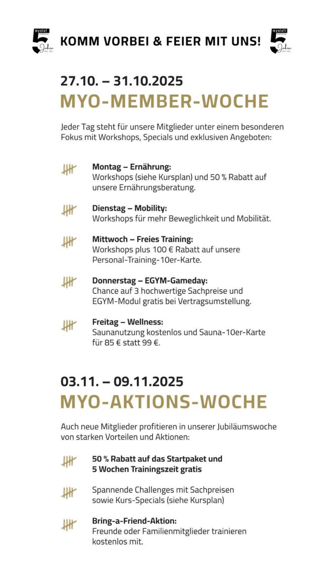 Unser Fitnessstudio in Durmersheim ist wie Dein zweites Zuhause und unser freundliches Team sorgt dafĂŒr, dass Du Dich rundum wohlfĂŒhlst. Deshalb profitierst Du als myoloft Mitglied von besonderen Benefits zusĂ€tzlich zu Deiner Mitgliedschaft, die jedes Training noch besser machen.